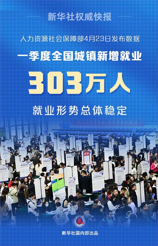 网络整理 2025-09-02 09:48(原标题:新华社权威快报丨一季度全国城镇新增就业303万人)