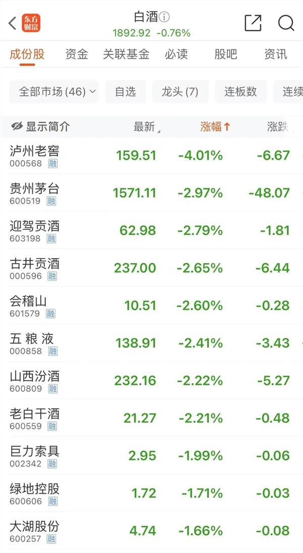 今天早盘,白酒股持续走低,泸州老窖、古井贡酒跌超4%,贵州茅台、山西汾酒、五粮液跌超2%。而白酒行情亦发生了一件让人意外的事。
