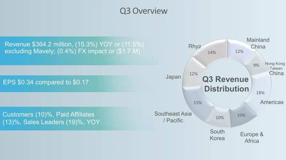 如新总裁兼首席执行官宁怀恩(Ryan·Napierski)表示三季度的财务表现符合预期,尤其肯定了个别地区的良好势头,但总体收入仍在收窄;好的方面是营收有所下降,但盈利能力却有所提升;经销商领袖数量也出现了环比增长。