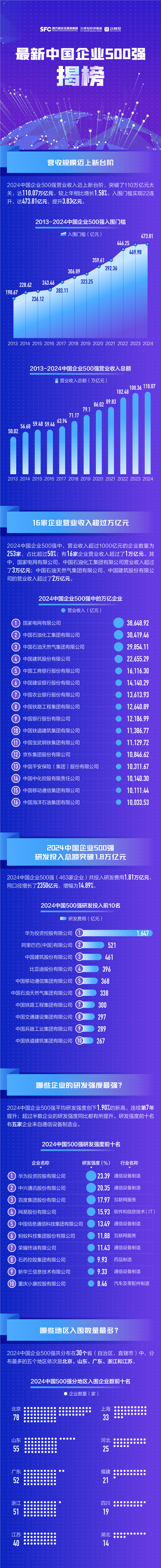 中国企业哪家强?中国企业500强榜单:总体营业收入突破110万亿元大关(附完整榜单)