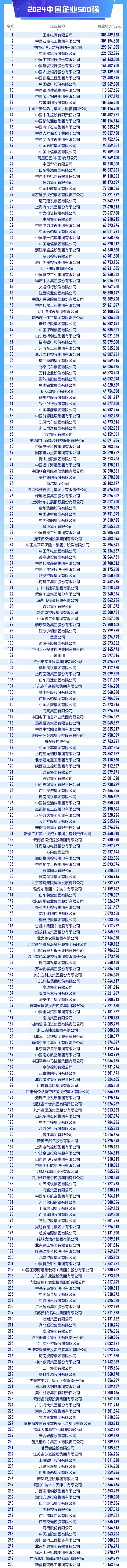网络整理 2025-11-17 04:00(原标题:中国企业哪家强?中国企业500强榜单:总体营业收入突破110万亿元大关(附完整榜单))
