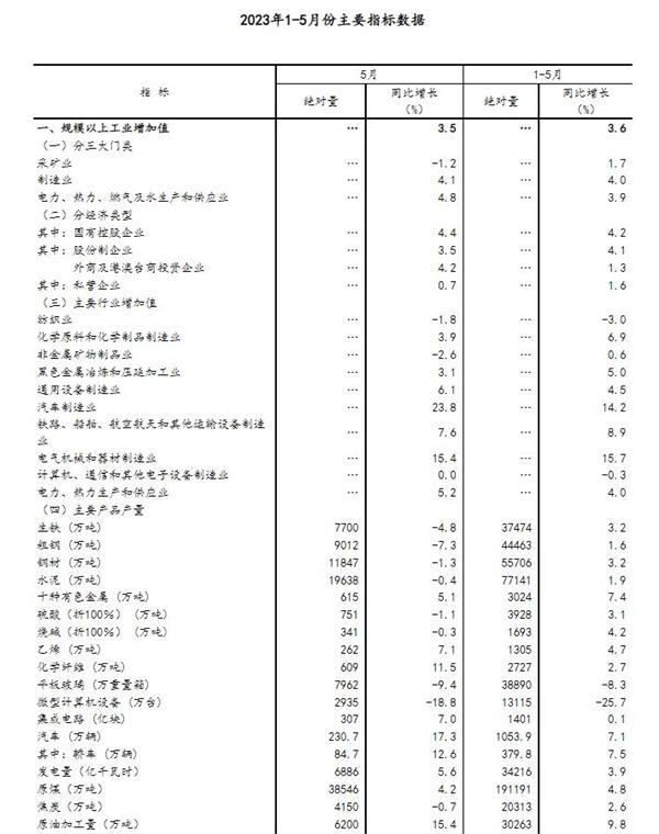 网络整理 2025-09-01 06:25(原标题:统计局:5月规模以上工业增加值同比增长3.5% 国民经济继续恢复)
