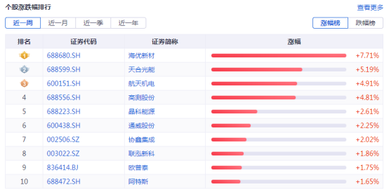 网络整理 2025-09-01 09:04证券之星光伏行业周报:中国有色金属工业协会硅业分会数据显示,本周国内硅料市场延续涨势,其中N型硅料涨幅超过P型硅料。中原证券最新观点指出,预计随着产业链上游价格逐步企稳,光伏下游价格将趋于稳定,从而带动下游装机需求。宏观方面,国家发改委等六部门文件指出,加强传统能源与新能源综合开发利用推动煤电、气电、风光电互补。企业方面,协鑫集成定增58亿加码电池片储能,爱旭股份定增60亿加码N型电池。