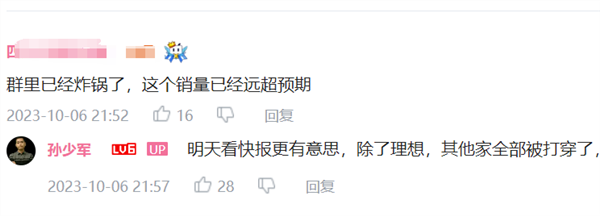 汽车博主孙少军表示,这个销量,除了理想汽车顶住压力,其他家厂商的销量被打穿了。