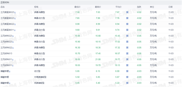2.正极材料价格