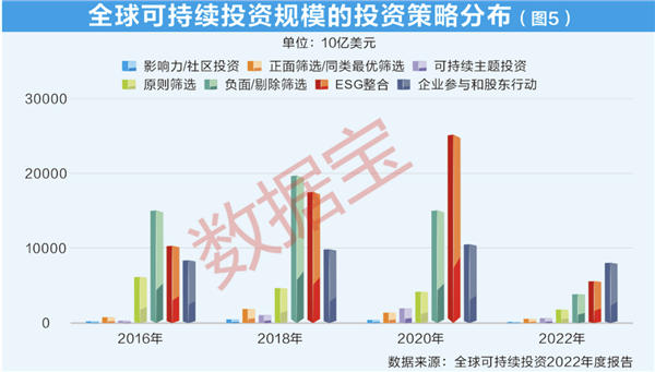 据全球可持续投资联盟(GSIA)最新统计,2022年企业参与和股东行动策略投资规模占比达39.3%,较2020年提升约20.7个百分点,逐渐成为ESG投资的主流策略。与此同时,ESG整合策略及负面筛除策略的投资规模占比较2020年分别下降17.3个和7.8个百分点(图5)。