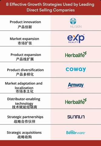 虽然调查结果仅提供了直销在北美市场整体的增长趋势,但更全面的分析同样能清晰地识别:领先的直销公司,为在这个动态行业中实现增长而采用的具体策略。