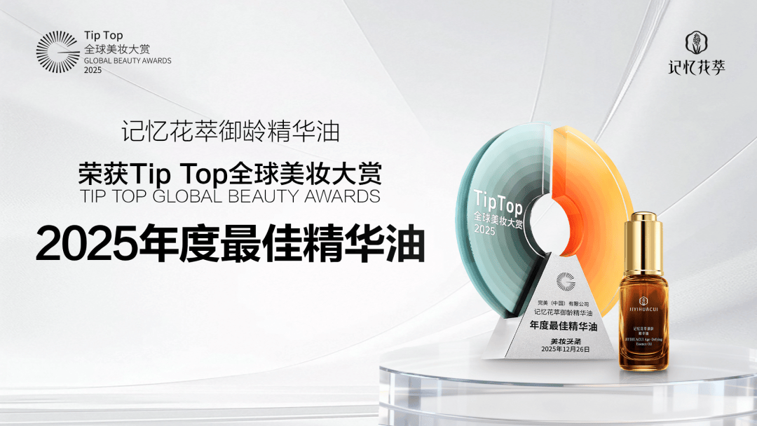 12月26日,「2025第二届GBC全球美妆大会暨美妆头条产业年会」同步揭晓「2025TipTop全球美妆大赏」获奖名单,记忆花萃御龄精华油凭借精准抗皱的功效逻辑,一举斩获“2025年度创新品类——年度最佳精华油”殊荣。