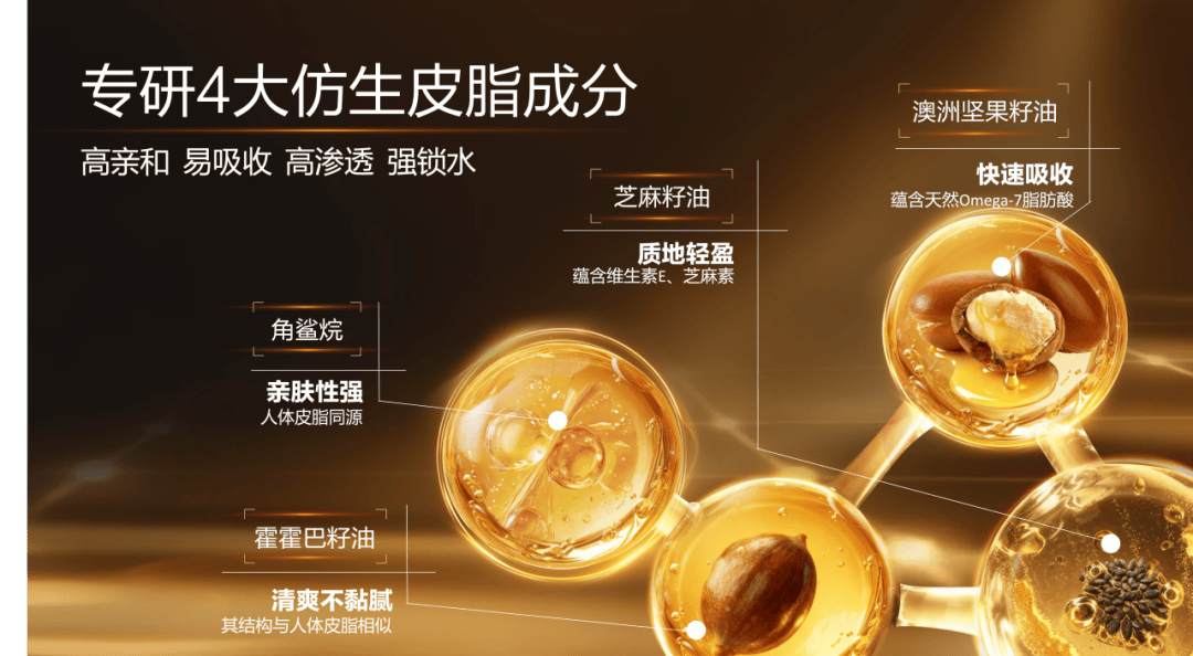 (1)4大仿生皮脂成分:以油养肤,强韧肌肤“第一道屏障”