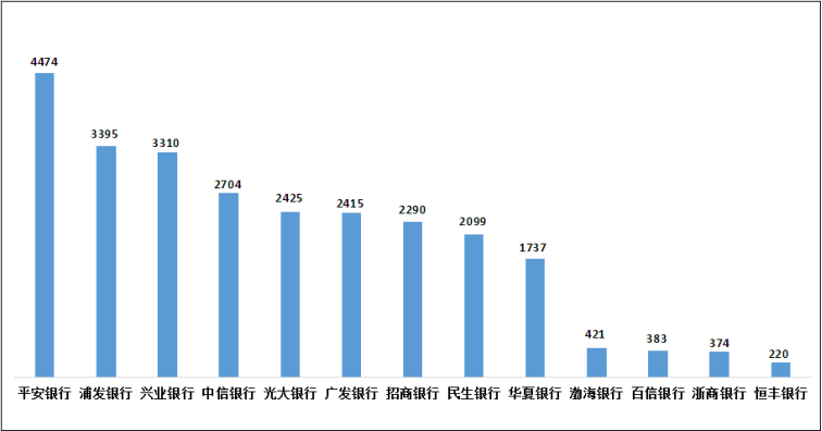 (二)各股份制商业银行的投诉量统计分析。股份制商业银行在2022年第四季度的投诉中位数为2290.0件。其中,平安银行的投诉量为4474件,占17%;浦发银行收到的案件有3395件,占12.9%;在兴业银行,有3310件,占12.6%;中信银行有2704个案例,占10.3%;其中2425件来自光大银行,占总数的9.2%;广发银行有2415份文件,占总文件的9.2%;在招商银行,有2290件,占8.7%;2099件,占民生银行的8.0%;华夏银行有1737份,占百分之六点六;在渤海银行,有421件,占1.6%;其中383个来自百信,占1.5%;其中,浙商银行案件374起,占全部案件的1.4%;恒丰银行有220份,占百分之零点八。