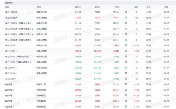 网络整理 2025-11-17 14:44证券之星新能源车行业周报:据上海有色网,截止6月27日,电池级碳酸锂6.04-6.19万元/吨,均价6.115万元/吨,环比上一工作日上涨550元/吨;工业级碳酸锂5.905-6.005万元/吨,均价5.955万元/吨,环比上一工作日上涨550元/吨,碳酸锂现货成交价格重心呈现震荡上行。当前碳酸锂市场仍延续供大于求的基本格局,供需矛盾依然突出。从供应端看,市场可流通货源充足,库存压力尚未得到有效缓解。近期碳酸锂价格的阶段性回升主要受宏观及市场情绪等外部因素驱动,而非基本面改善所致。需求侧方面,下游正极材料企业仍保持审慎的采购策略,以刚性需求采购为主,尚未出现明显的补库意愿,市场整体观望情绪浓厚。在此市场环境下,下游材料企业更倾向于通过长协加量的方式锁定采购成本,以确保原料供应的稳定性。