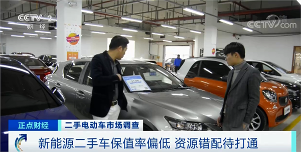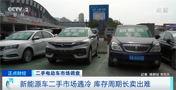 在浙江杭州最大的二手车交易市场,记者注意到,一些新能源二手车被摆放在显眼的位置,车上摆放着醒目招牌,即使这样也鲜有人问津,车身已落满灰尘。