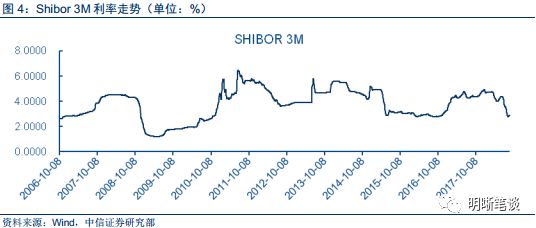 我国的货币政策在2000年以来大致经历了四次收紧,并不是所有的收紧都是因为通货膨胀。在2016年10月,Shibor 3M 利率上升,金融市场资金利率上升,流动性收紧。央行从10月份开始重启14天、28天逆回购,这导致了金融市场在7天以及以下期限的流动性不足和资金利率的上升,央行以此引导高杠杆的债券市场调整。在很大程度上,这一政策也与决策层金融监管趋严、以及降杠杆和防风险的基调趋于一致。从中央经济工作会议透露出的信号可以看出,金融去杠杆趋势已经非常明显,央行货币政策转向稳健中性。从金融系统风险角度看,这种缩短放长提供流动性的方式,推动了债券市场的良性调整。此次的货币政策收紧和通货膨胀率无关,通货膨胀率在政府的通胀目标之下。