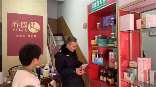 在检查现场,执法人员通过查看进货票据、购销台账等方式对直销服务网点进行全面检查,一是查看是否具有营业执照及食品经营许可证;二是查看是否具有授权证书及专卖店协议;三是查看是否具有直销员证及推销合同;四是查看直销产品是否具有检测报告;五是查看是否存在夸大及虚假宣传等欺骗消费者的行为,同时,向各经营主体宣贯《直销管理条例》《禁止传销条例》等法律法规,并告诫经营主体要切实履行主体责任,依法依规开展直销经营活动。