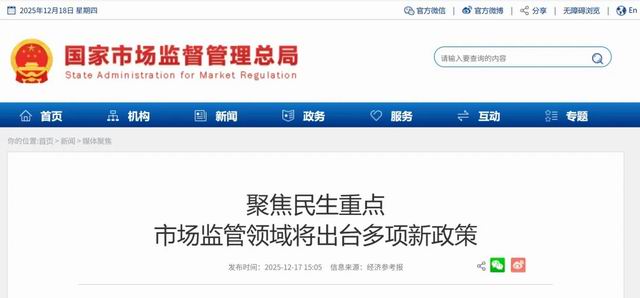 网络整理 2026-01-05 05:0412月16日,在市场监管总局四季度新闻发布会上,记者获悉,围绕规范平台经济、强化食品安全、加强反垄断反不正当竞争、加强和保障纤维制品质量安全监管等多个民生重点领域,市场监管总局将出台多项新的政策文件。